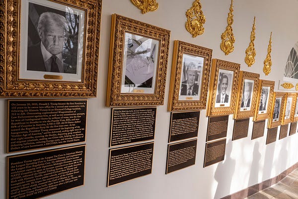 If you squint your eyes ever so slightly you might just mistake the presidential portraits and bronze-framed plaques for a serious historical display.