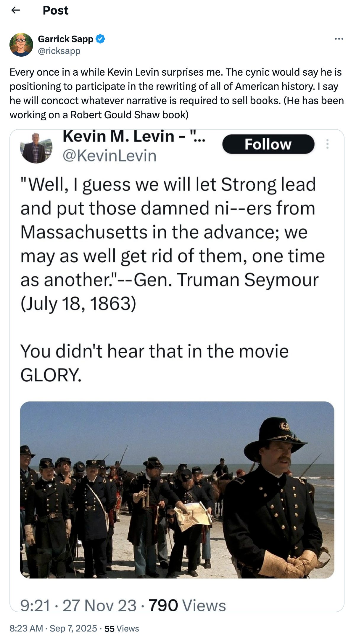 Imagine going this far to try to rationalize why I would post something like this or include it in my book. It points to someone who believes that the study of history is nothing more than an expression of political or ideological conviction. Hopeless.