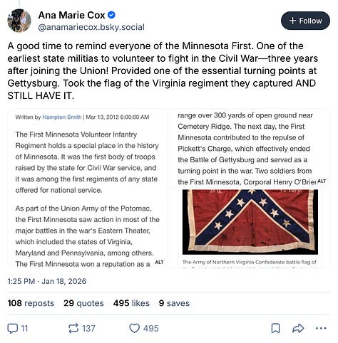 The First Minnesota had a lot of immigrants from Germany, Ireland, and Scandinavia. Proud that Minnesotans are honoring their immigrant ancestors by standing up to ICE.