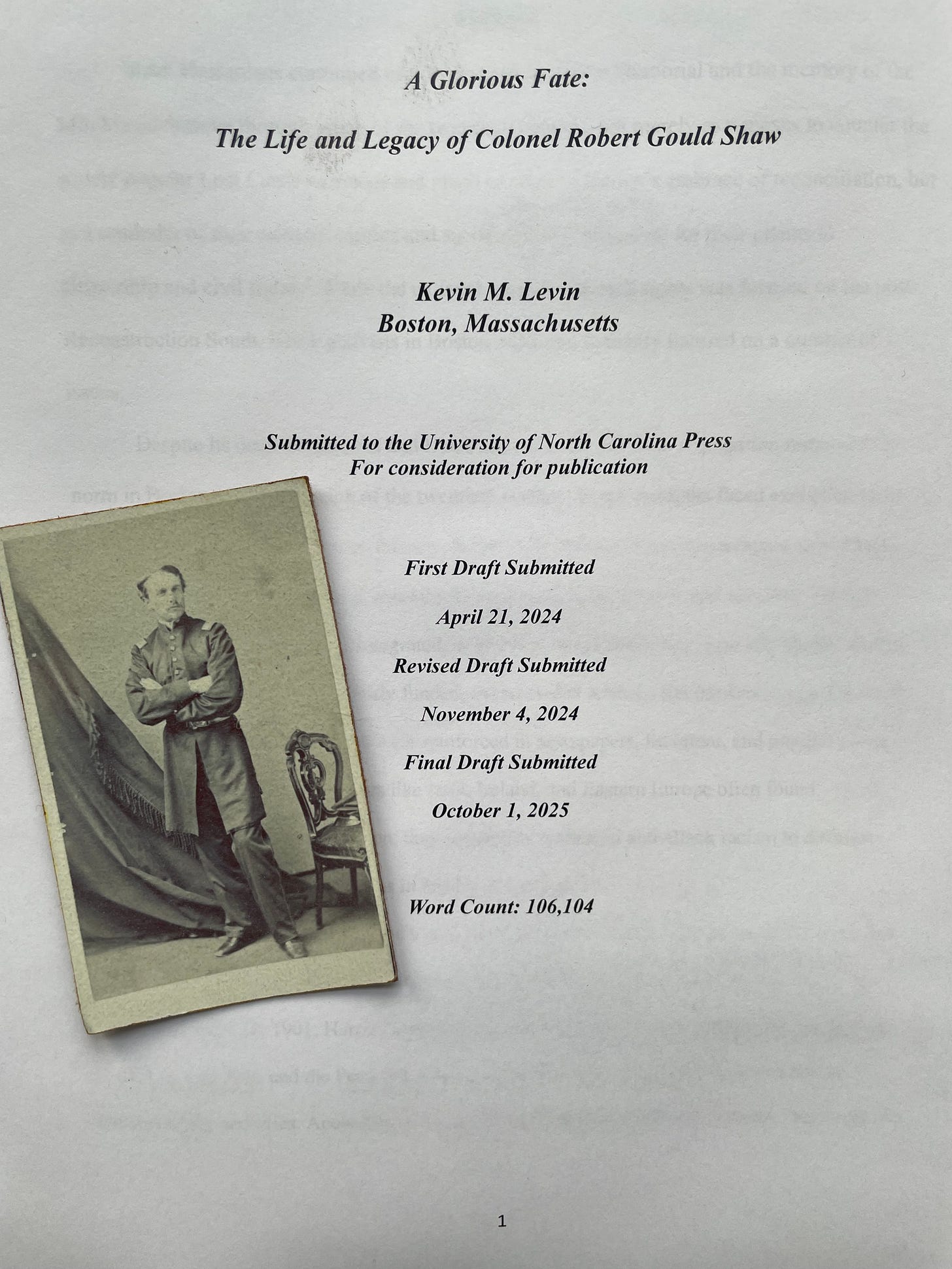 After five years of research and writing, A Glorious Fate: The Life and Legacy of Colonel Robert Gould Shaw is off to the publisher. Reaching this goal is still both an exhilarating and horrifying experience. On the one hand, it certainly feels like a huge weight has been lifted from my shoulders, but it also comes with the realization that real people will soon have a chance to read it and judge it for themselves.
