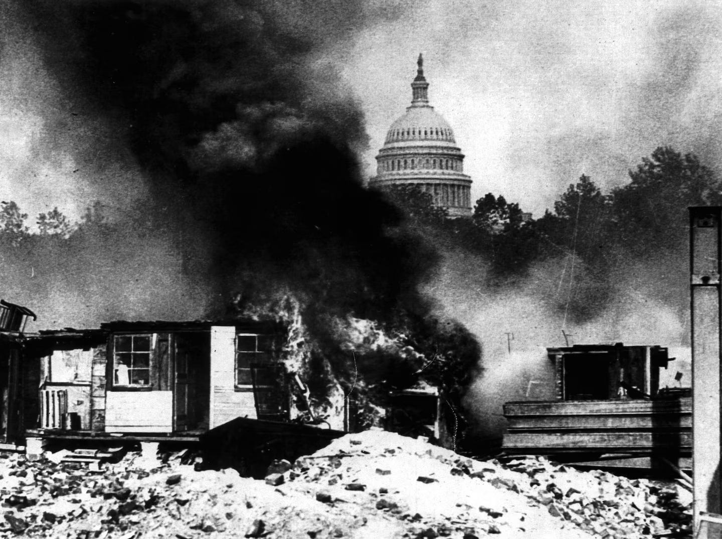 One of the most striking examples of political violence during the Great Depression was the Bonus Army March of 1932. Tens of thousands of World War I veterans, many of whom were unemployed and destitute, descended on Washington, D.C., demanding early payment of a promised bonus scheduled for 1945. They set up massive encampments and peacefully lobbied Congress. But when the government refused their demands and ordered them to disperse, President Herbert Hoover called in the U.S. Army. The clash ended with the burning of the camp and injuries to both veterans and civilians. This brutal crackdown shocked the nation and symbolized the government's increasing reliance on force to suppress dissent.