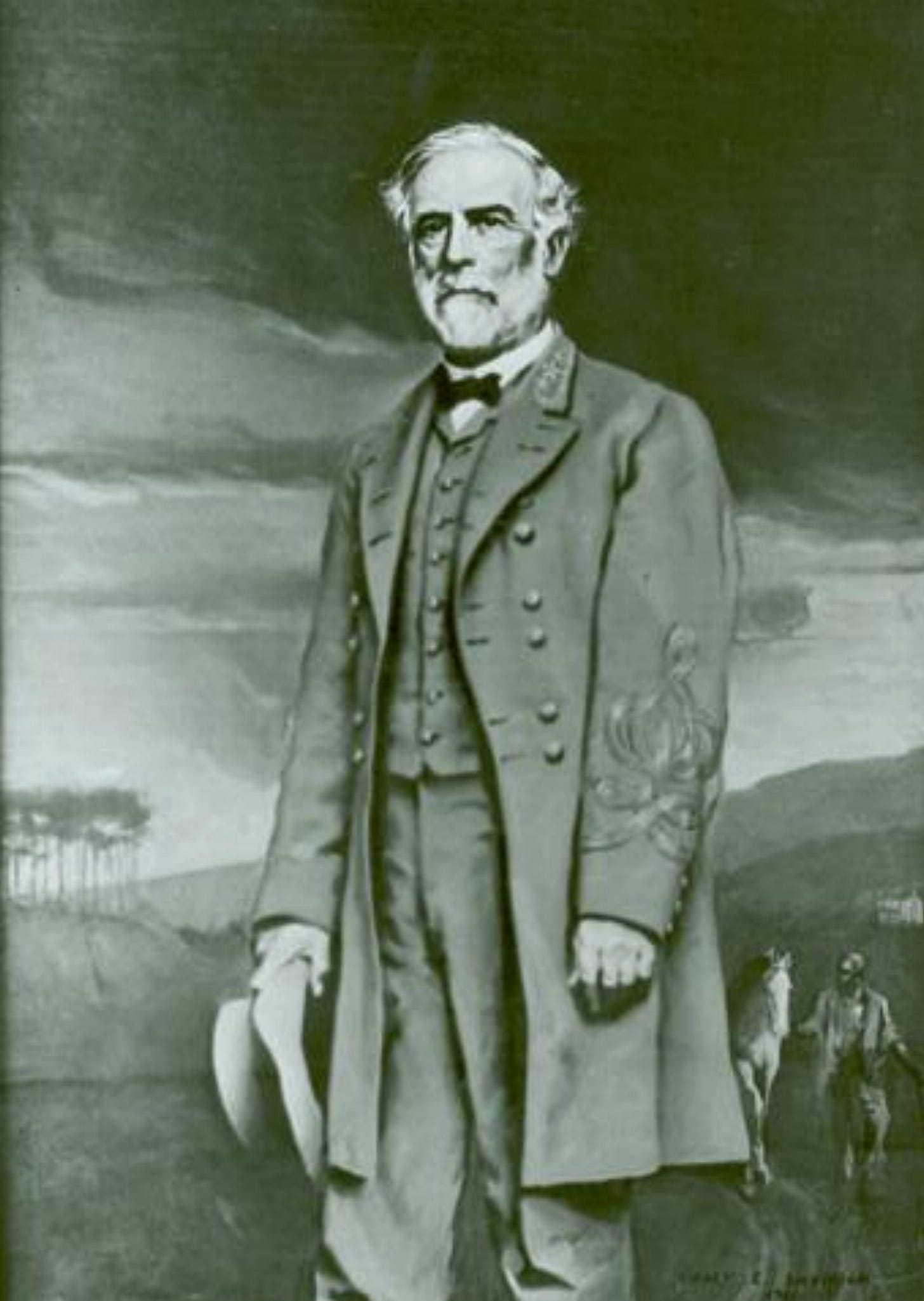 Seidule may be right about this, but it looks to me like the Black man is following Lee with his horse Traveller. If he is emancipated he clearly embodies the Lost Cause trope of the “loyal slave”—even after freedom, former slaves remained loyal.
