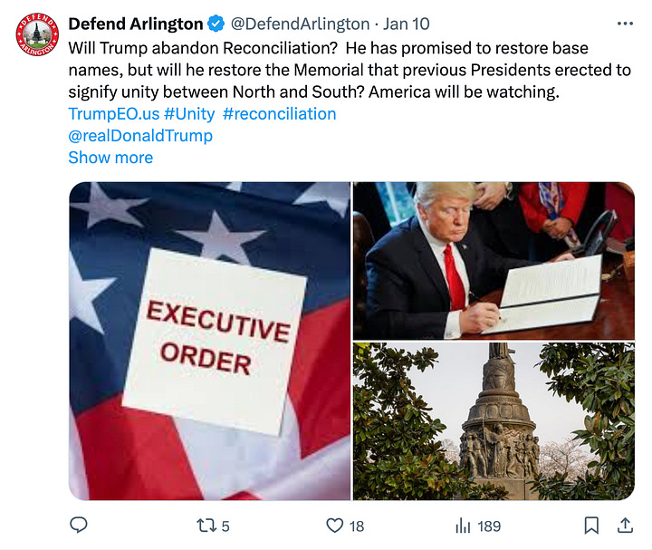 Others are looking forward to a public statement from the president or even an executive order to return a Confederate monument to Arlington National Cemetery, which was removed in December 2023.